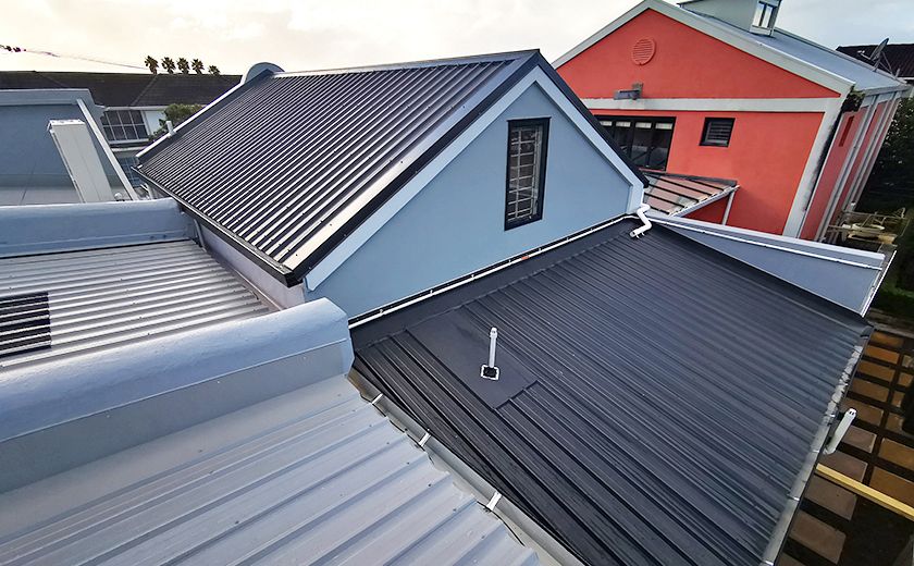 As the project managers on this site, we bought in sub-contractors to upgrade the storm water drainage including new cesspits and channels. The same contractors also did the landscaping, which required building a new fence and gate as well as install a nib wall to separate the space from the neighbouring property. They then laid concrete pavers and cobblestones to bring the landscapes back to life to reflect the stunning new roof.